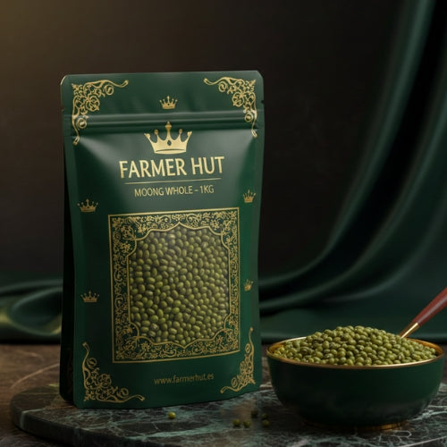 Premium quality Moong Whole (Whole Green Gram) – 1KG by Farmer Hut. Carefully selected, clean, and naturally nutritious, our moong dal is perfect for healthy Indian, Portuguese, and international recipes. Ideal for soups, curries, salads, and sprouting.
